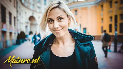 Mature blonde Cristine rubs lollipop on her clit and licks it